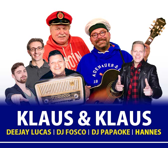 Ladies & Gentlemen, Klingelingeling und Bühne frei für KLAUS & KLAUS: Von der Nordseeküste auf den Rhein, von der Schlagerbühne aufs Schiffsdeck, vom Pferd auf dem Flur zur Krankenschwester!